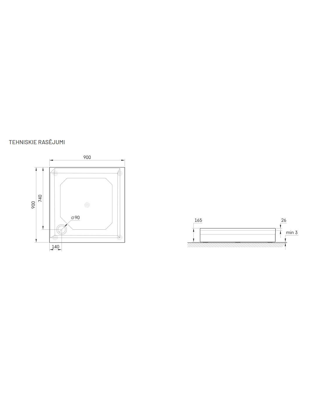 Süvistatud dušialus väljendunud libisemisvastase tekstuuriga, reguleeritavatel jalgadel ja kattepaneeliga. Valmistatud kivimassist - tugev ja stabiilne materjal klassikaliselt läikiva pinnaga. Kõrgus 16,5 cm