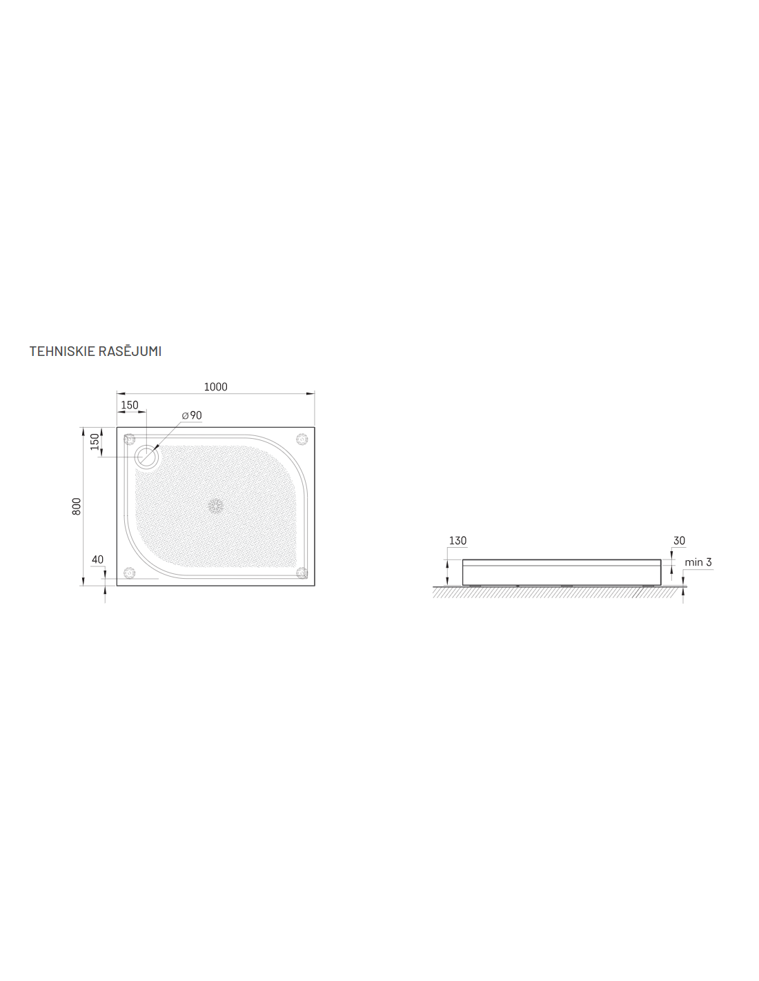 Ristkülikukujuline dušialus paneeli ja reguleeritavate jalgadega. Valmistatud kivimassist - tugevast ja stabiilsest materjalist klassikalise läikiva pinnaga. Kõrgus k = 135 mm