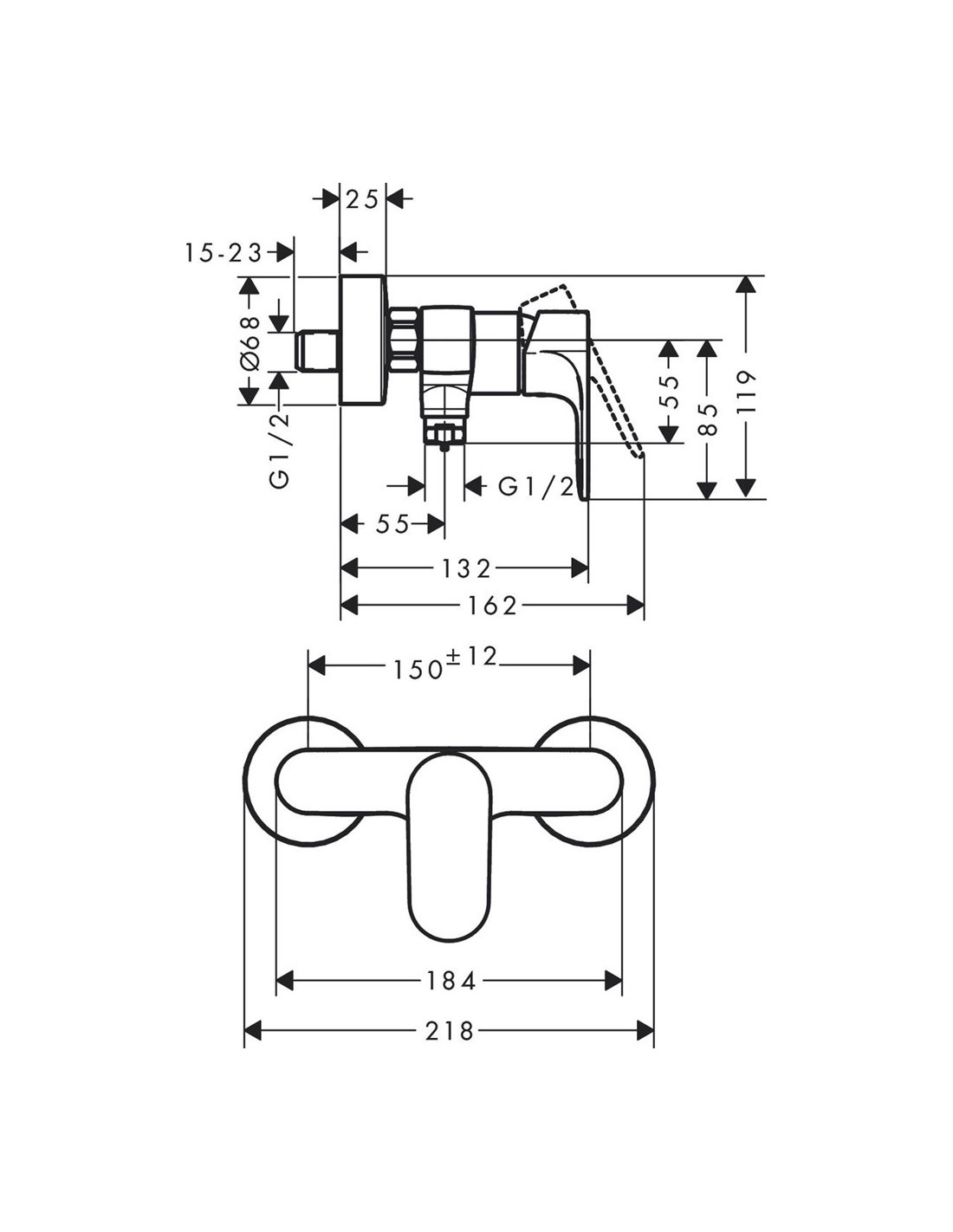 Rebris S dušas maisītājs, hroms