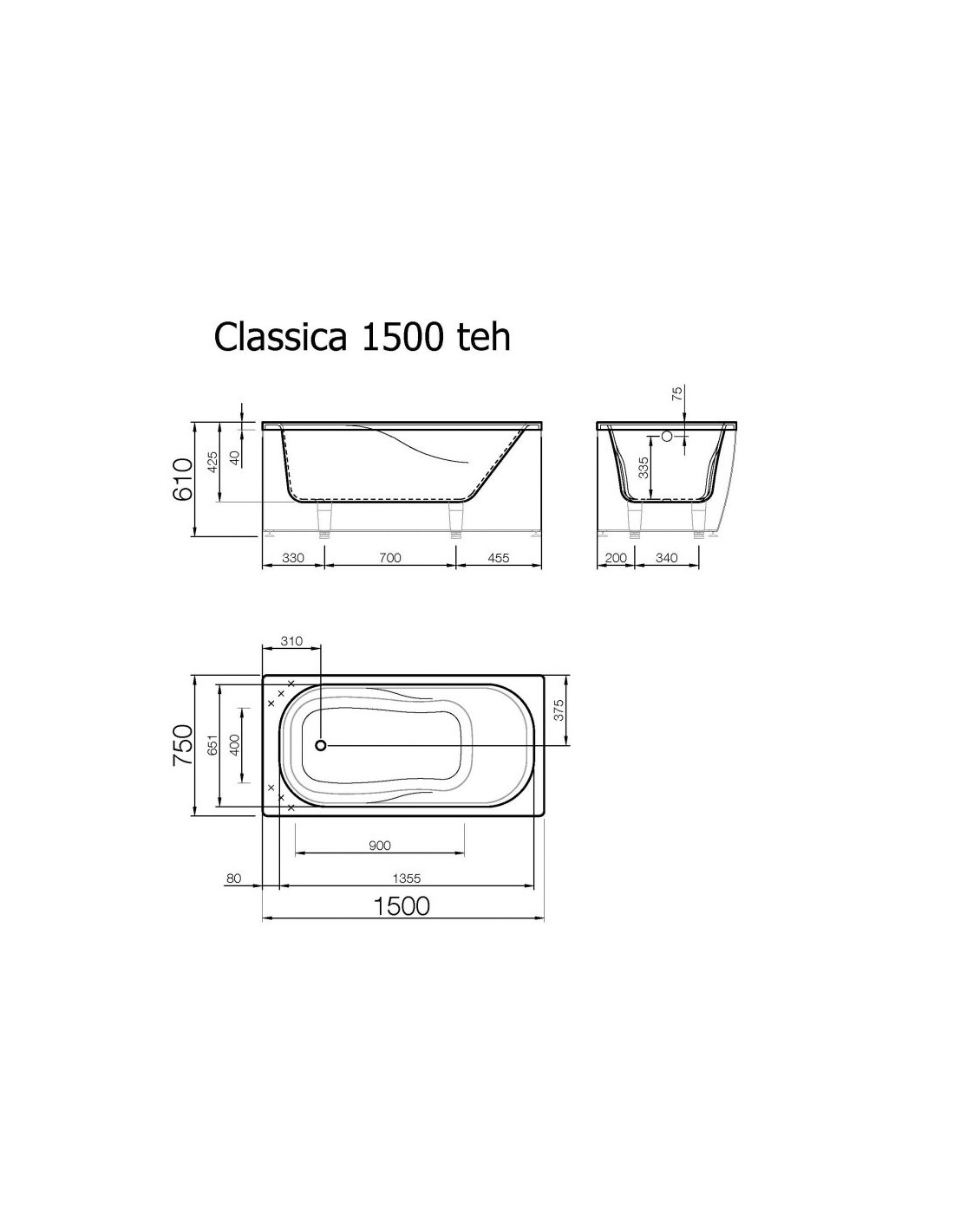 Vanna CLASSICA 1500x750mm, balta - 3