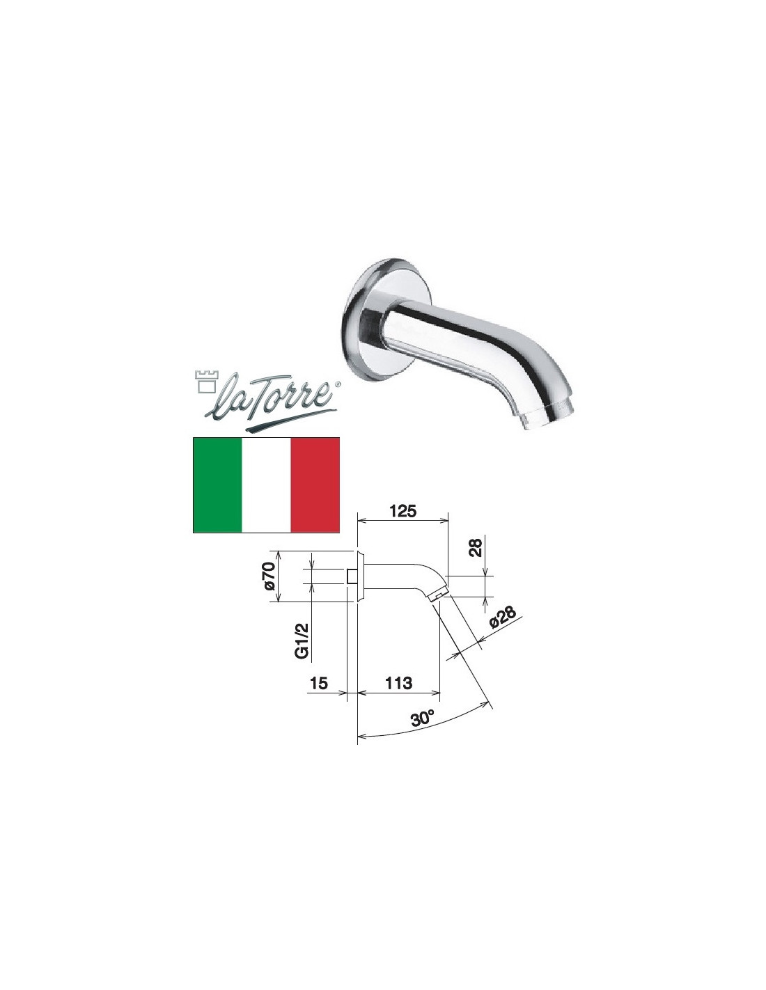 Spout from the wall 12.5cm chrome, KONVEX - 1