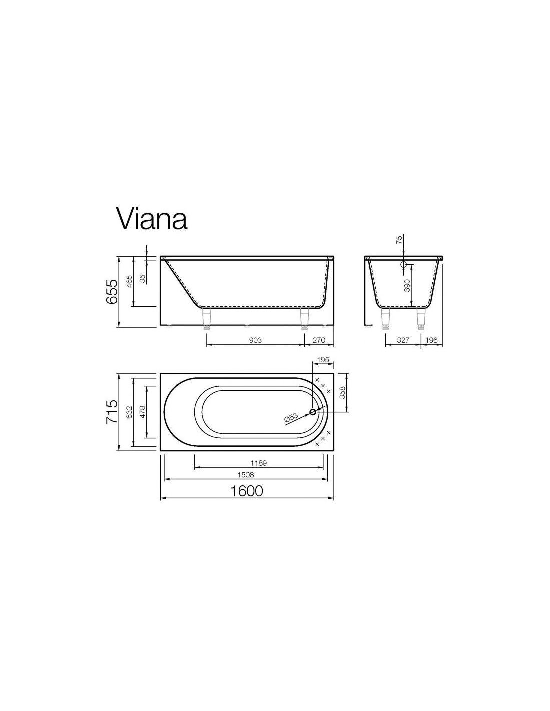 Vanna VIANA 1600x715mm, balta