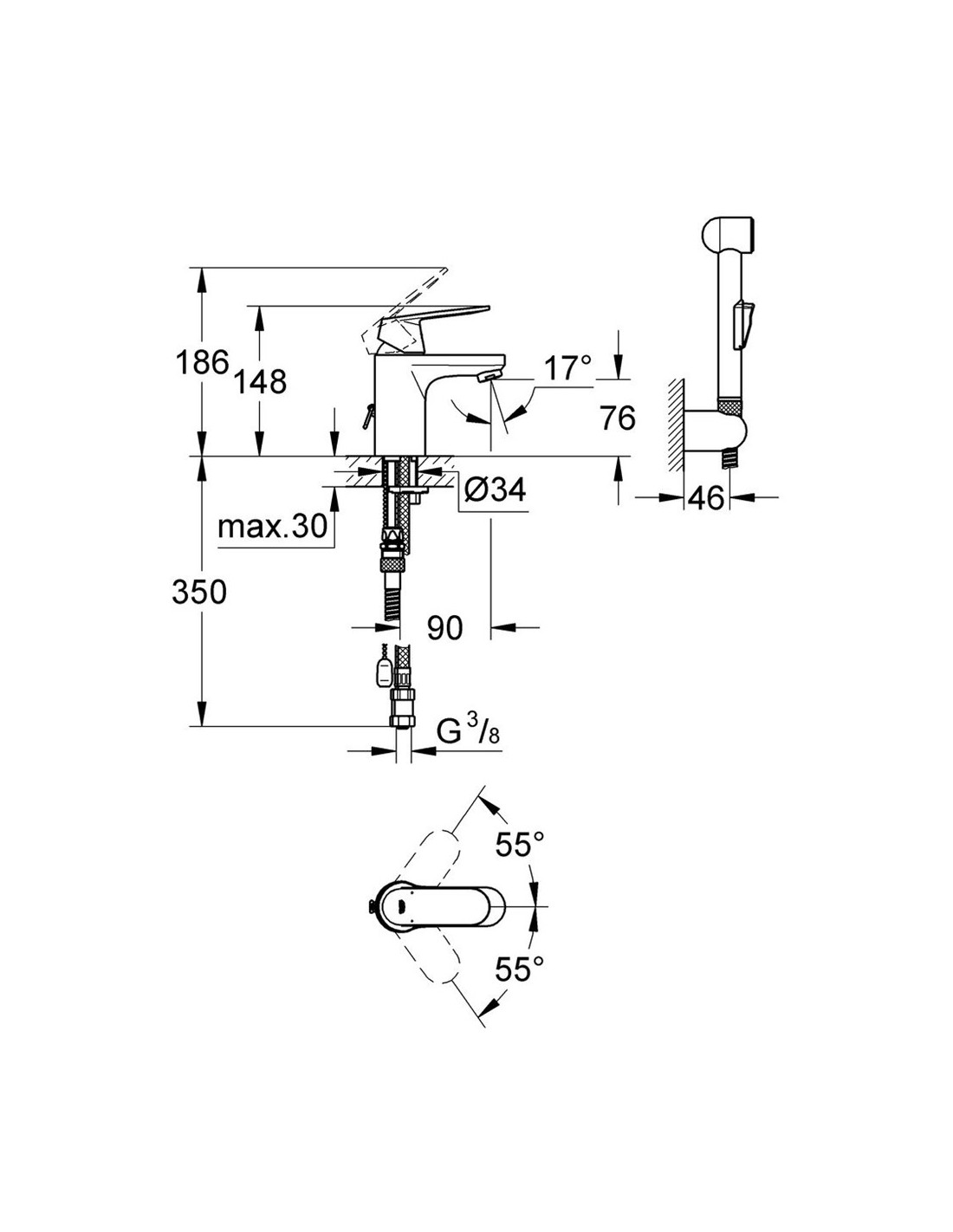 Grohe izlietnes jaucējkrāns Eurosmart Cosmopolitan 23125000