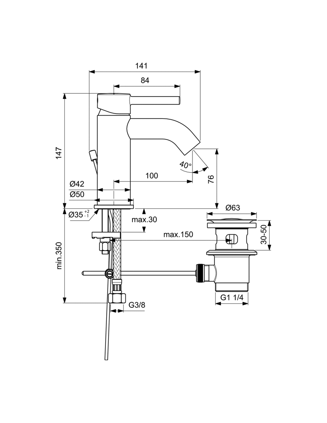 Aizverama Pop-Up noplūde izlietnei.