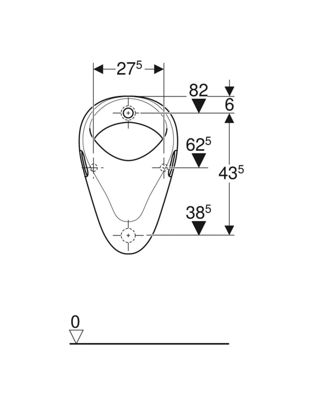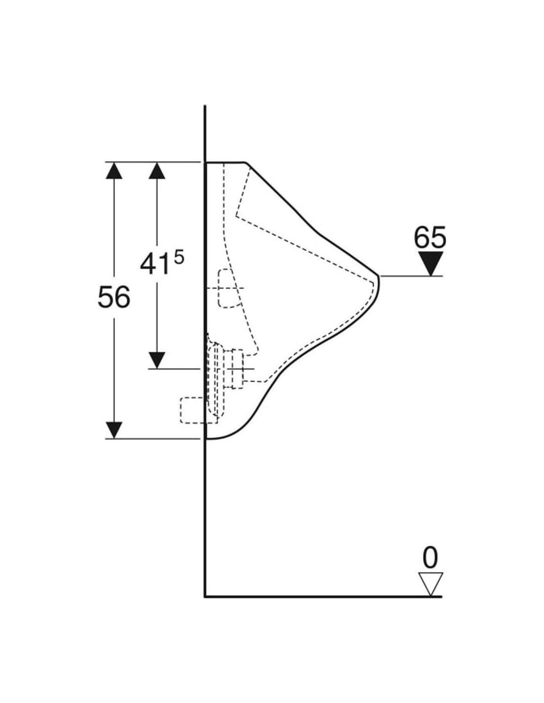 Geberit Felix pisuārs, ieplūde no aizmugures, izplūde uz aizmuguri
