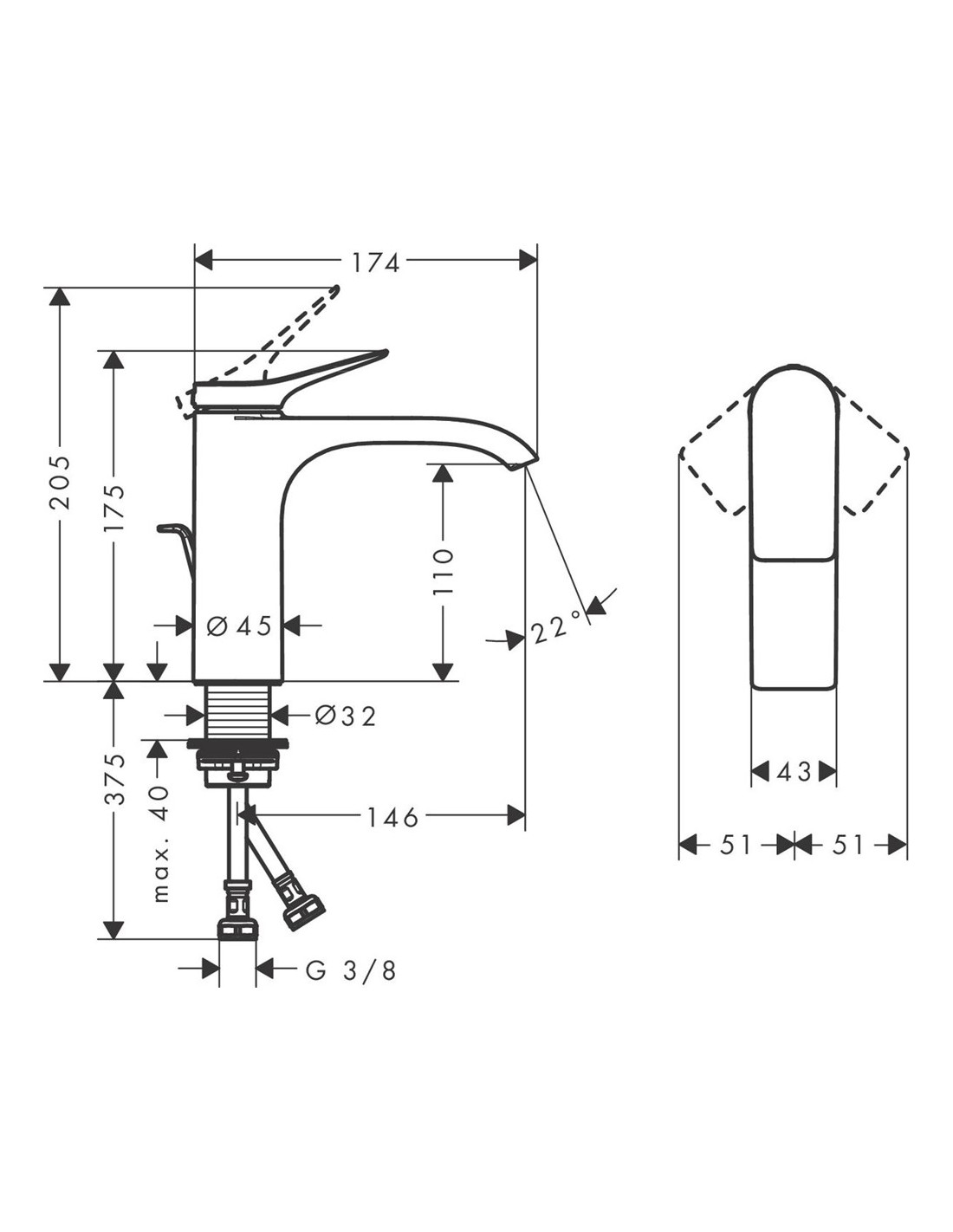 Vivenis 110 izlietnes maisītājs, ar pop-up, matets melns