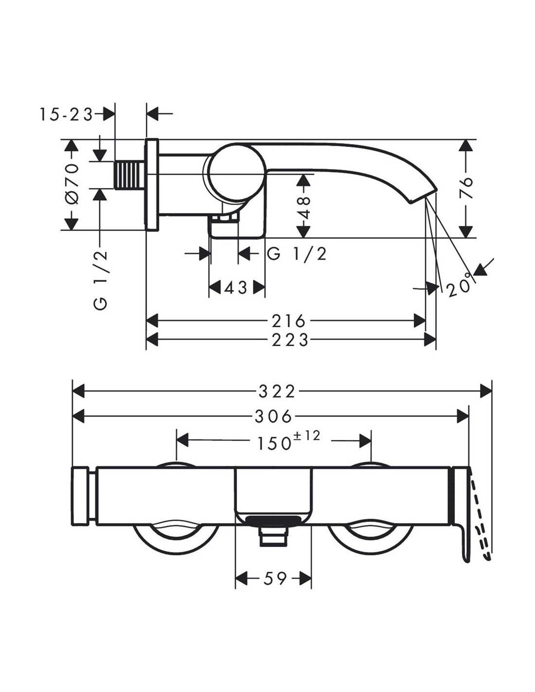 Vivenis vannas maisītajs, hromēts