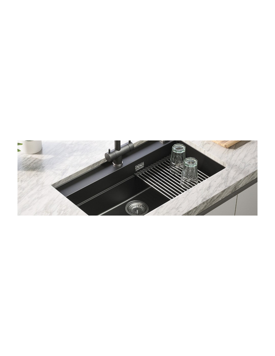 Plašs nodalījums - nodrošina vairāk vietas, atvieglojot lielu trauku, katlu un pannu mazgāšanu. Ar lielāku ietilpību izlietne ir funkcionālāka, ļaujot ērtāk pagatavot un sakopt pēc ēdienreizēm. Lielāks nodalījums nozīmē arī mazāk ūdens šļakatu un efektīvāku virtuves telpas izmantošanu. Divu montāžas metožu izvēle — klasiskā padziļinājumā [I] vai elegantā apakšā iebūvējamā veidā [U]: dod klientiem iespēju izvēlēties sev vēlamo montāžas metodi atbilstoši individuālajām vajadzībām un virtuves stilam.