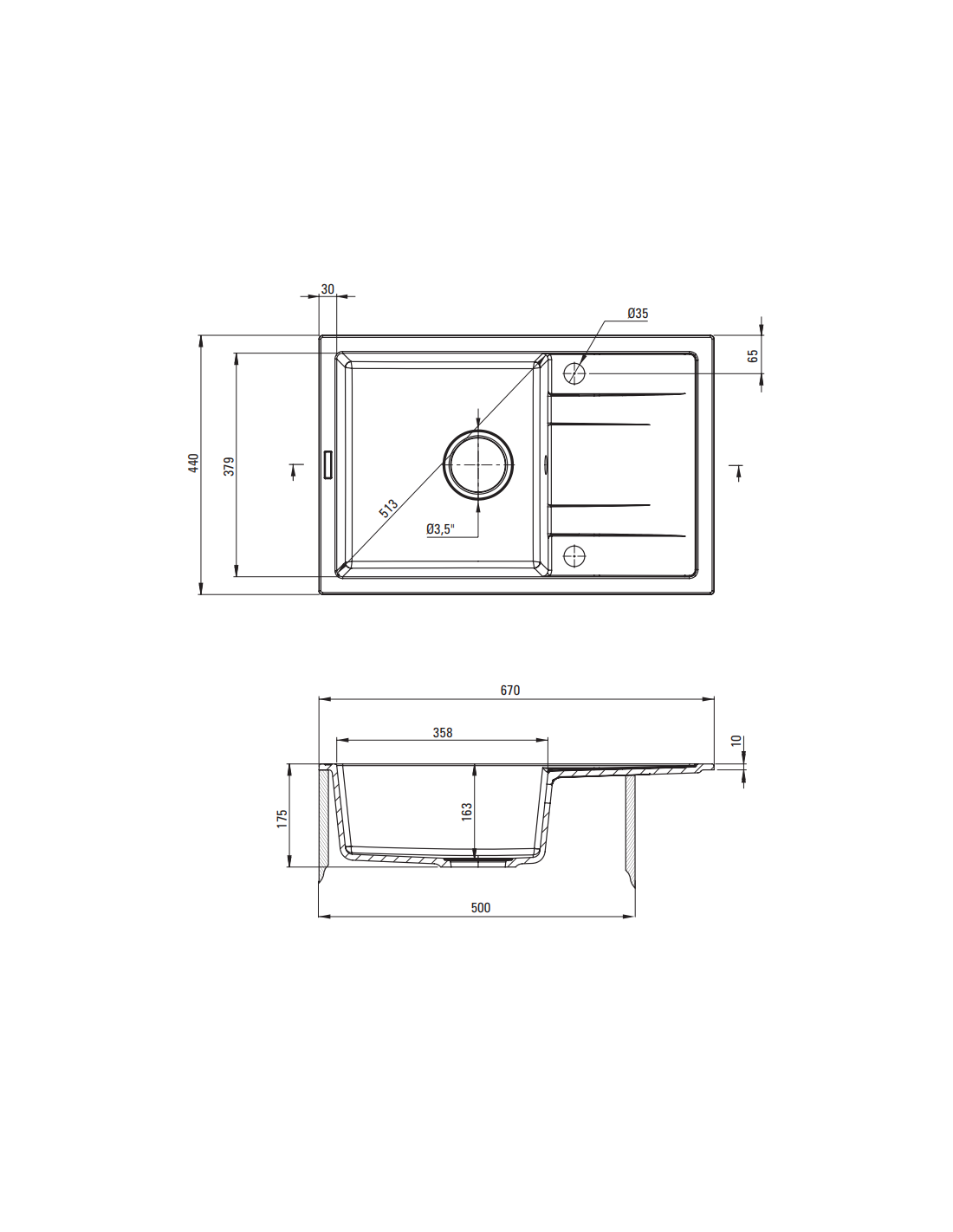 Deante Corio granīta izlietne, 1 bļoda ar notecinātāju ZRC_G113