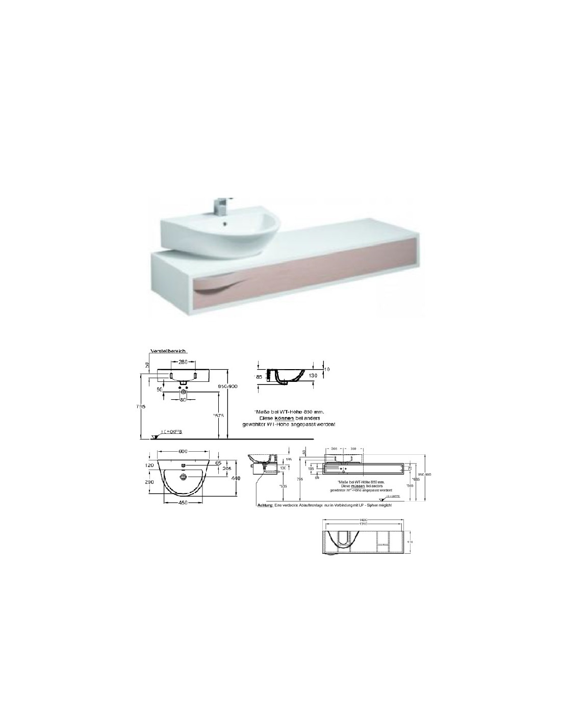 Skapītis izlietnei ar atvilktni 140x15x41cm FLOW, 877055-000