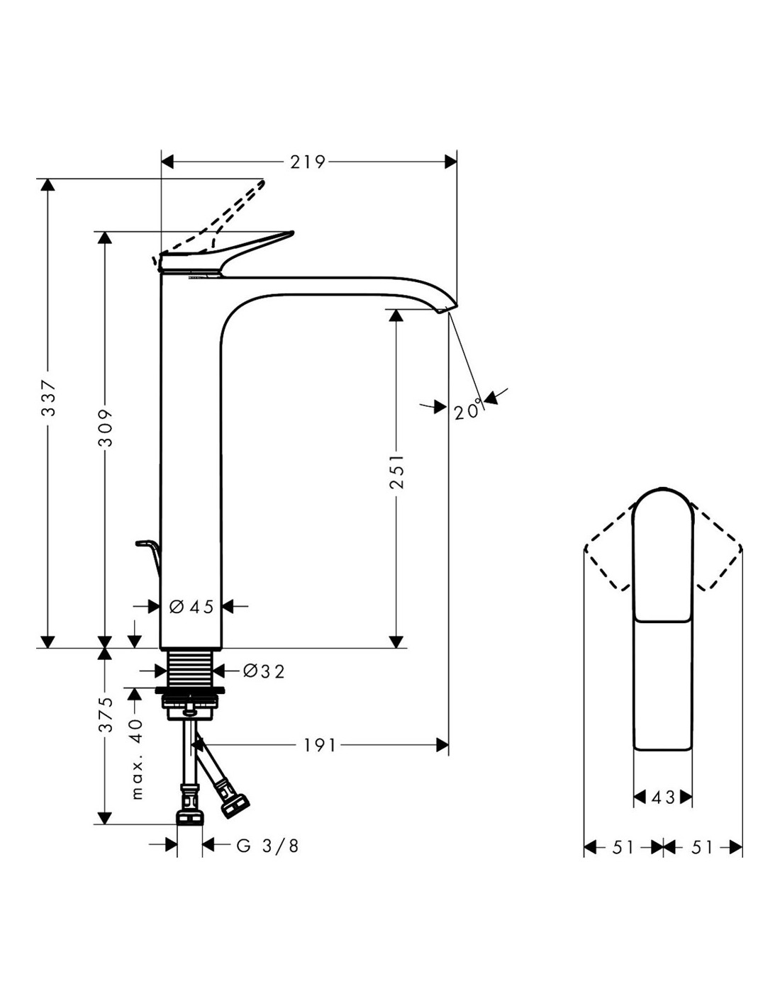 Vivenis 250 izlietnes maisītājs, paaugstināts, ar pop-up, hroms